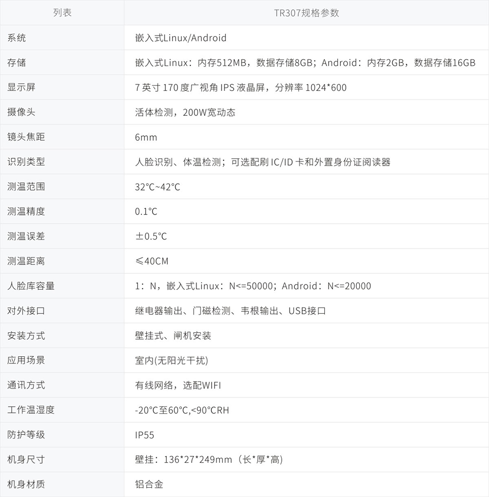 測(cè)溫型人臉識(shí)別終端(TR307-B1-A)