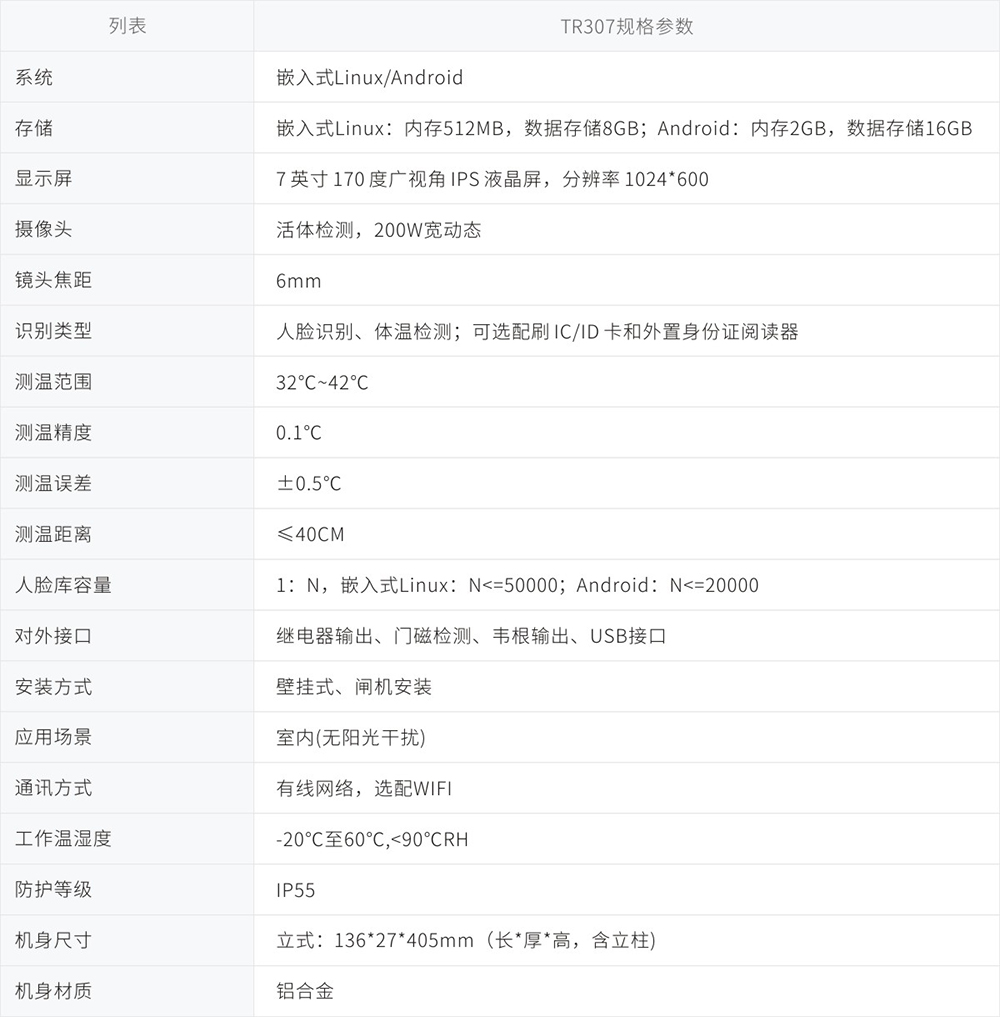 測(cè)溫型人臉識(shí)別終端(TR307-L2-A)